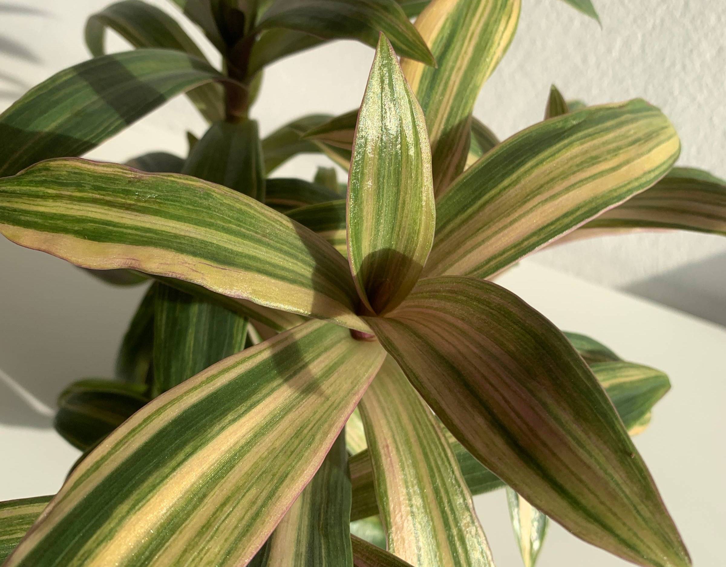 Tradescantia Spathacea Cream has only been around for a few years. It begins as a compact, upright rosette with long, narrow leaves, but as it matures, the stems start to trail beautifully over the edges of the pot.