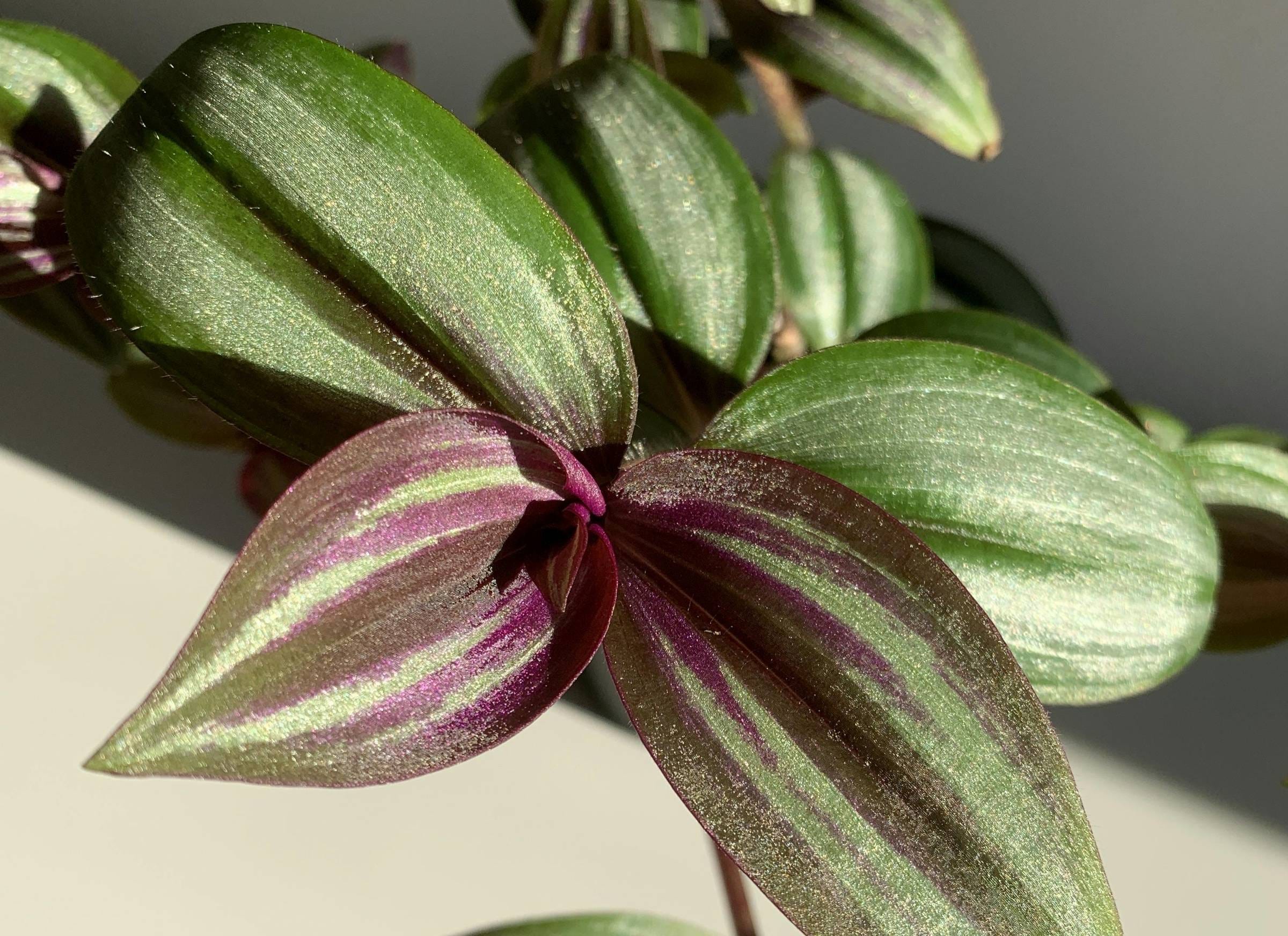 This is, in my experience, the most common problem. I’ve overwatered many plants over the years and will probably do it again. Tradescantias are semi-succulent plants, meaning they store water in their leaves and stems. The thicker the leaves and stems, the more water they can store. So, they prefer to dry out a bit between waterings. I often let mine dry out completely between waterings, and they’re happy with that. Signs of overwatering can be leaves turning yellow or the stem feeling mushy. If the bottom leaves are turning brown in a compact plant, it can be caused by too high humidity or lingering water on the leaves and too little airflow. Then, it might be time to let the soil dry out more between waterings.