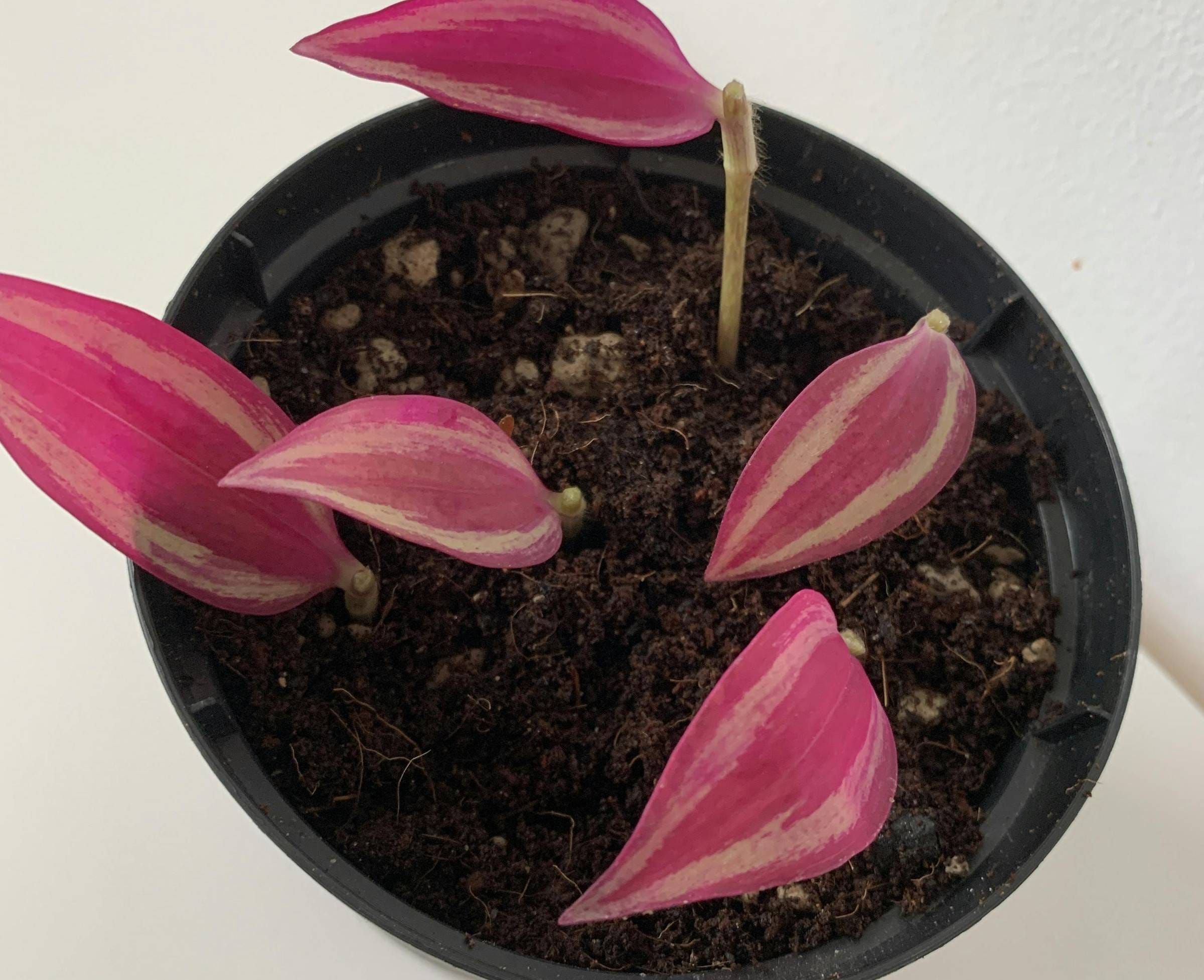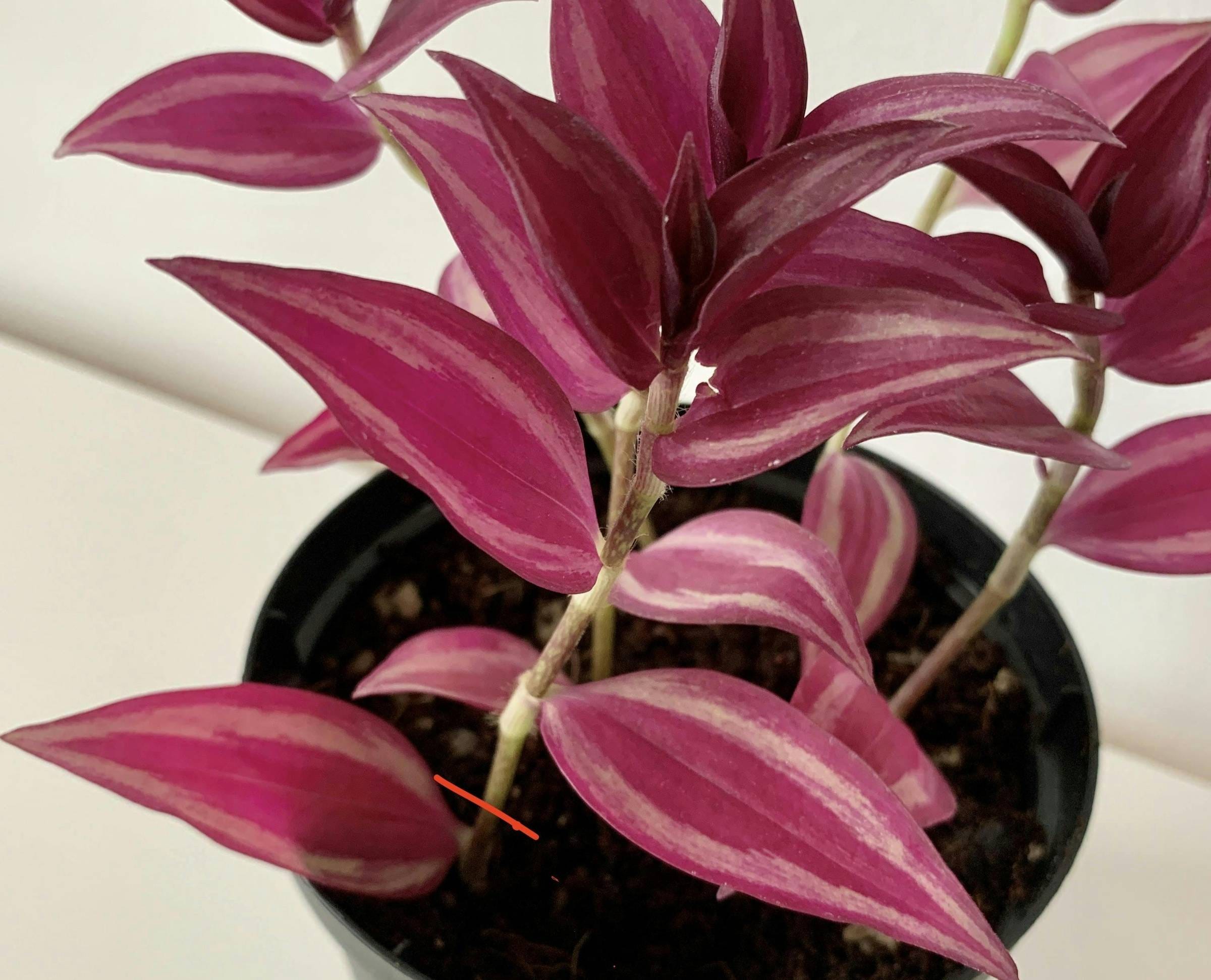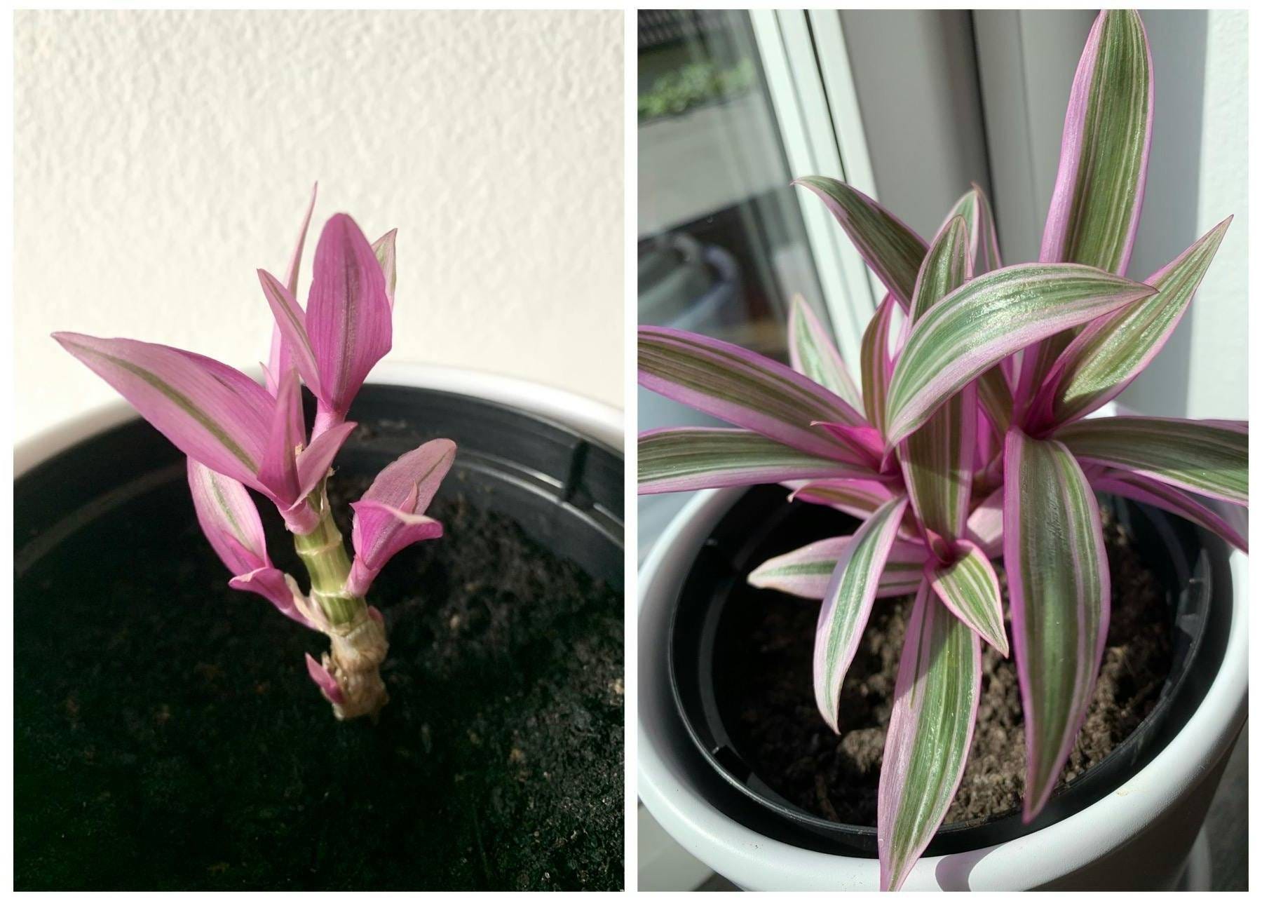 Trimming your Spathacea differs a bit from other Tradescantias. It’s not needed as often, and if it’s getting enough light to form a compact rosette, I don’t replant the cutting in the same pot.