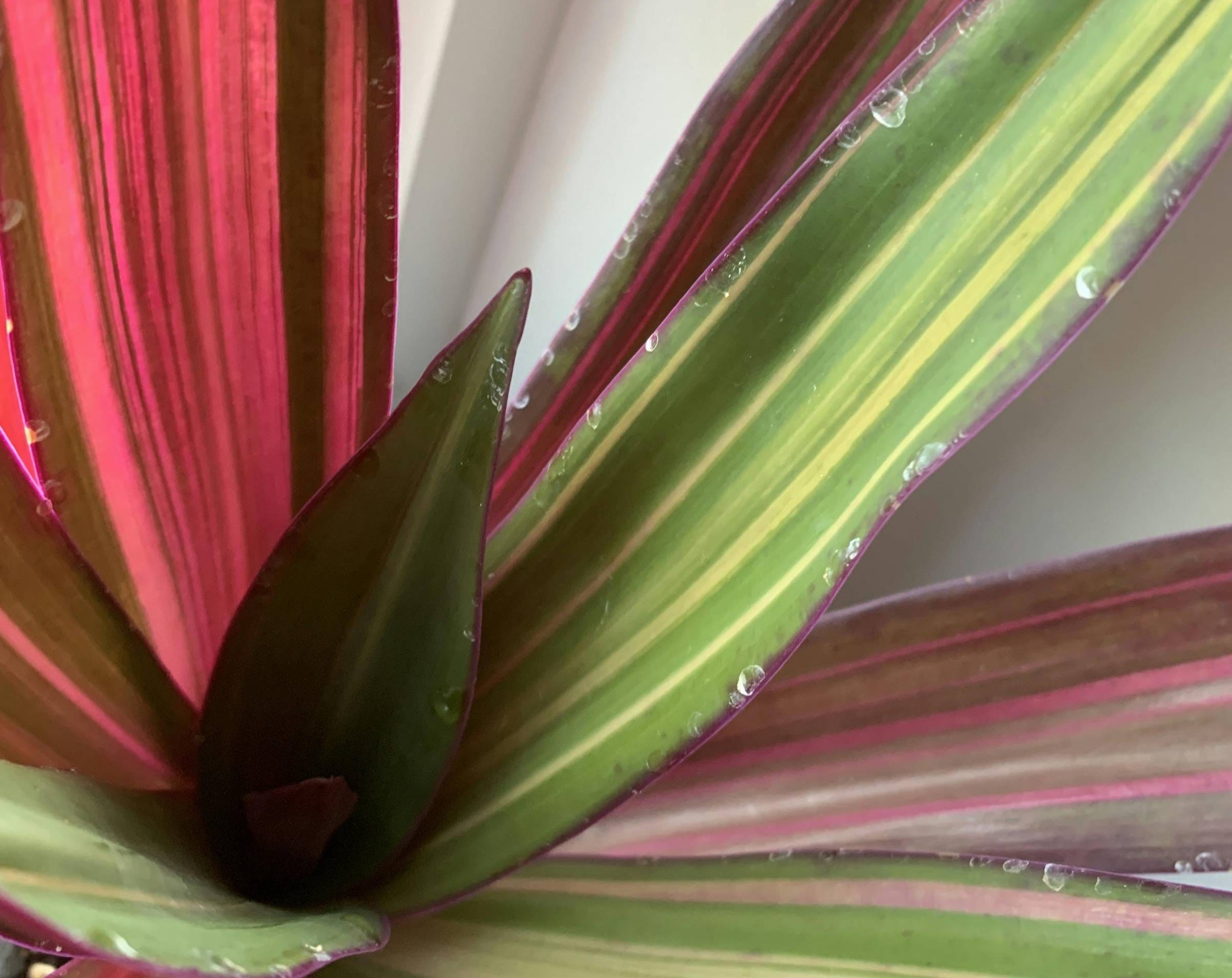 Stunted growth and curled leaves are signs that your Tradescantia is stressed. This can happen due to too much sun, too little water, or a lack of nutrients. Some Tradescantias with red pigments, such as the Zebrinas, can develop an intense red colour when stressed.